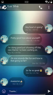 In the third rendition of the Dip themes, your EvolveSMS interface will look better than ever before. You will find that the translucent bubbles, custom wallpaper, and custom sent animation compliment each other perfectly.